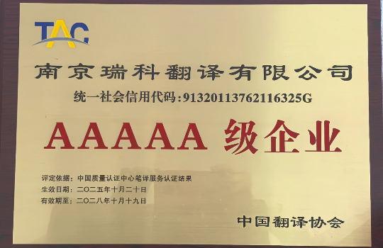 公司通过 ISO 9001:2025 质量管理体系认证,并以最高等级(AAAAA 级)获得由中国翻译协会(TAC)与中国质量认证中心(CQC)联合评审的 ISO 17100:2015 翻译服务质量认证。凭借卓越的专业实力与严格的质量控制流程,瑞科稳居中国语言服务行业前列。